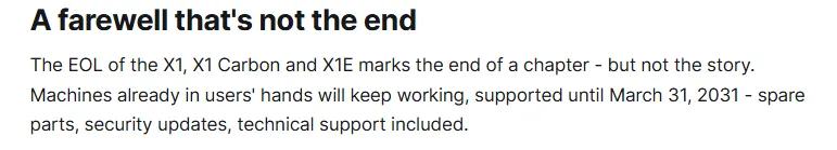 配件供应和技术支持持续到2031年3月。