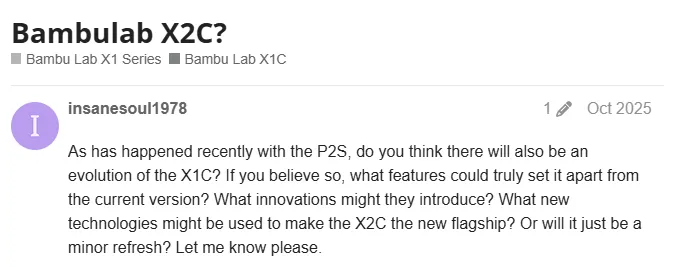拓竹社区论坛已经在讨论X2C的可能性。