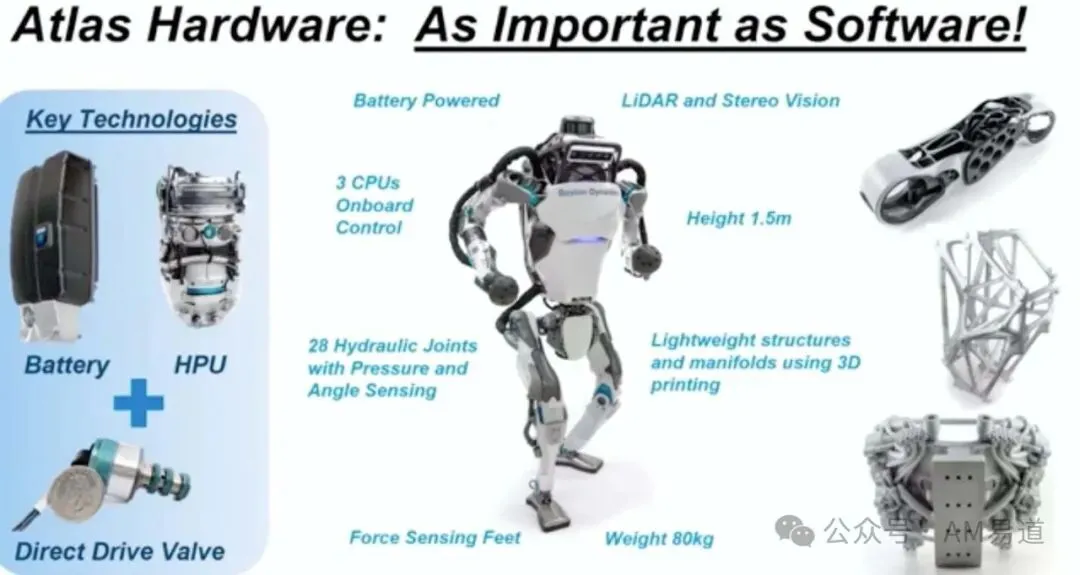 首先,在Atlas公开的信息中,这个机器人明确大量使用了钛合金和铝合金的3D打印实现了轻量化。
