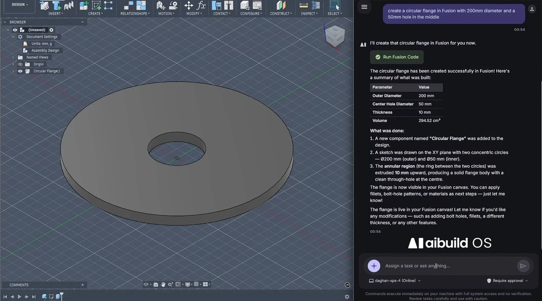 据Aibuild介绍,该系统仅需要一个使用普通语言描述的初始指令,人工智能便能自主规划并执行后续所有制造步骤。这意味着,诸如将原始3D扫描数据转换为可用于生产的网格、从零件设计生成模具和夹具,或是将3D概念推进至结构打印和铣削路径等任务,将无需在每次交接时进行手动清理。