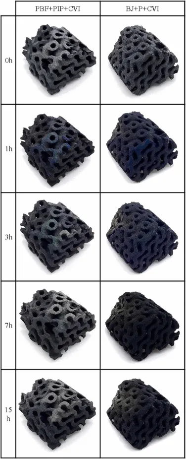 化学气相渗透处理后,两种方法制造的部件均保持了整体形状。