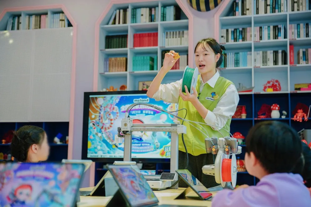 中国家庭娱乐品牌meland与3D打印企业Bambu Lab合作,在中国深圳的万象天地购物中心,开设了首家面向儿童的3D打印创意中心。