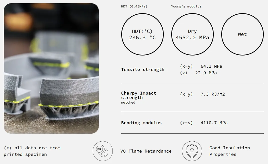 Polymaker往里加了20%玻璃纤维做增强,热变形温度直接干到230℃以上。