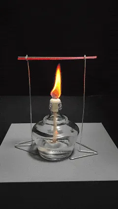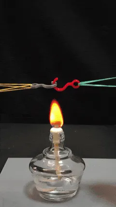 我们用PPS-GF20和PETG分别打印了同规格的挂钩,尾环拴上皮筋施加拉力,然后架在酒精灯上烤。