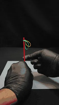 把PPS-GF20(灰色)和PETG(红色)分别打印成同规格样条,用两根一样的橡皮筋固定在相同位置,一端固定,另一端同时往后拉。