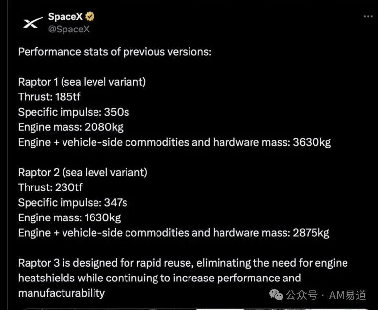 所以此次发布的引擎,AM易道猜测,SpaceX早已测试并生产多台。