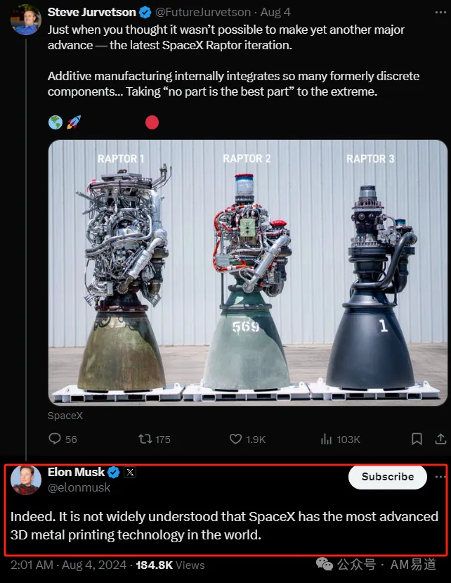 “确实如此,并不是很多人了解SpaceX拥有世界上最先进的金属3D打印技术”