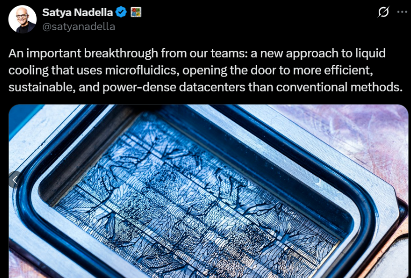 昨天我们看到财联社发了条消息,说微软芯片散热技术突破。