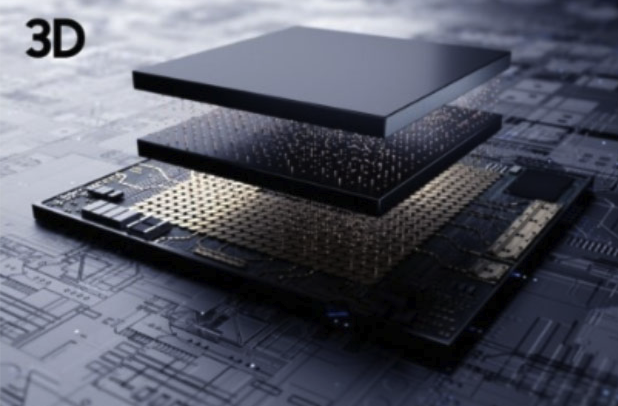 现在的芯片都是平面的,但业界一直梦想着能像盖楼一样把芯片堆叠起来,做成3D芯片。