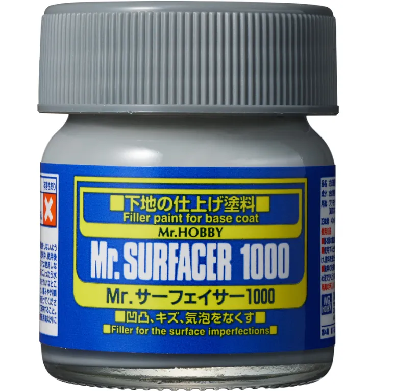 汽车腻子或者模型专用补土,刮涂或喷涂在打磨后的件上,填平残余的细小坑洼,再打磨一遍。