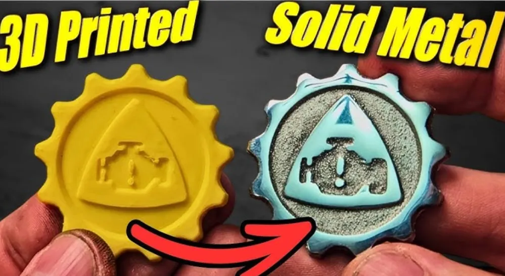 然后用低熔点合金,铋锡类合金熔点在58到100摄氏度区间,放在电热板上就能熔化,浇注进硅胶模里,冷却开模,出来的是金属零件。