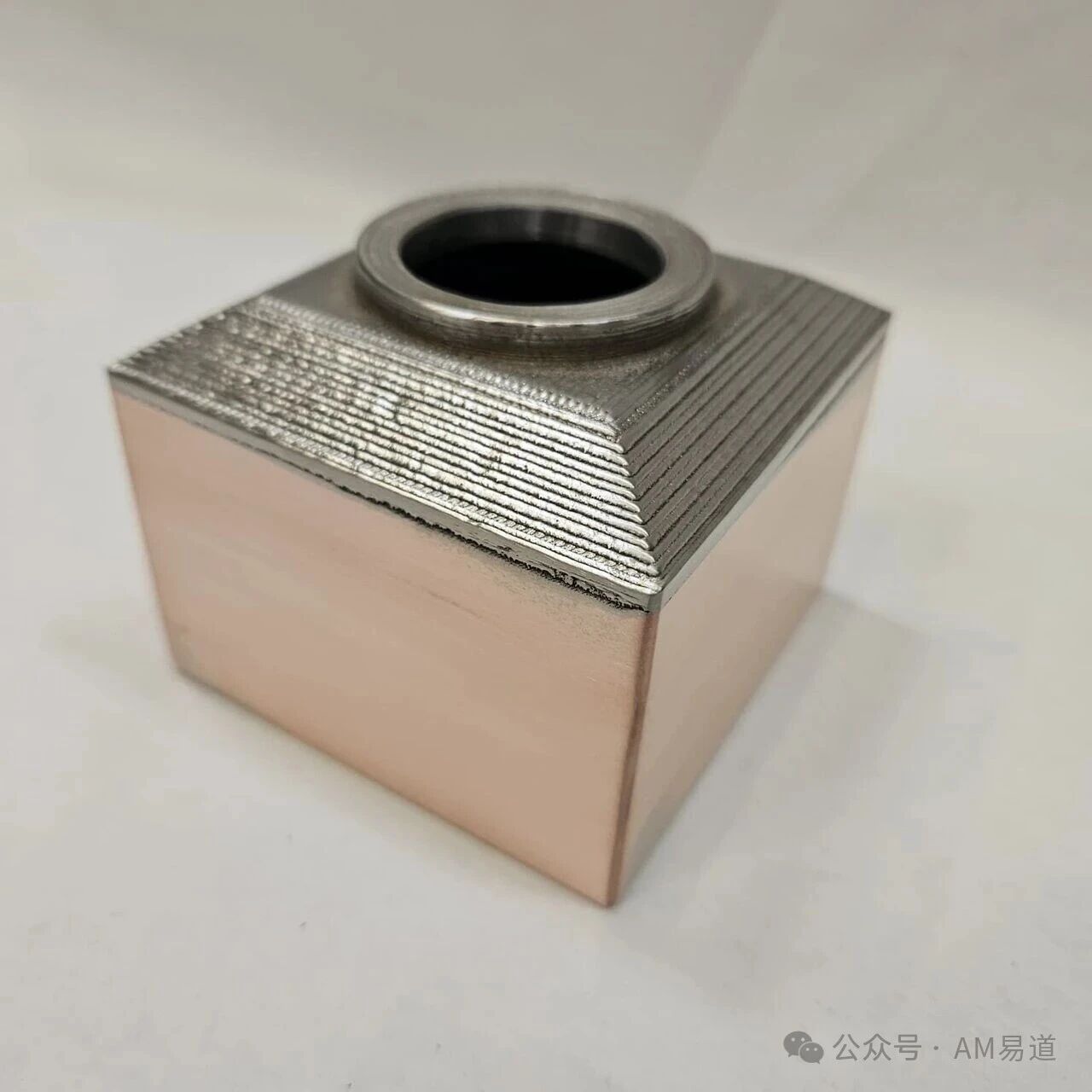 这个项目的核心是:先用LPBF(激光粉末床熔融)打印铜材料的精细壁结构,然后用DED(定向能量沉积)在顶部沉积镍基合金进行封装。