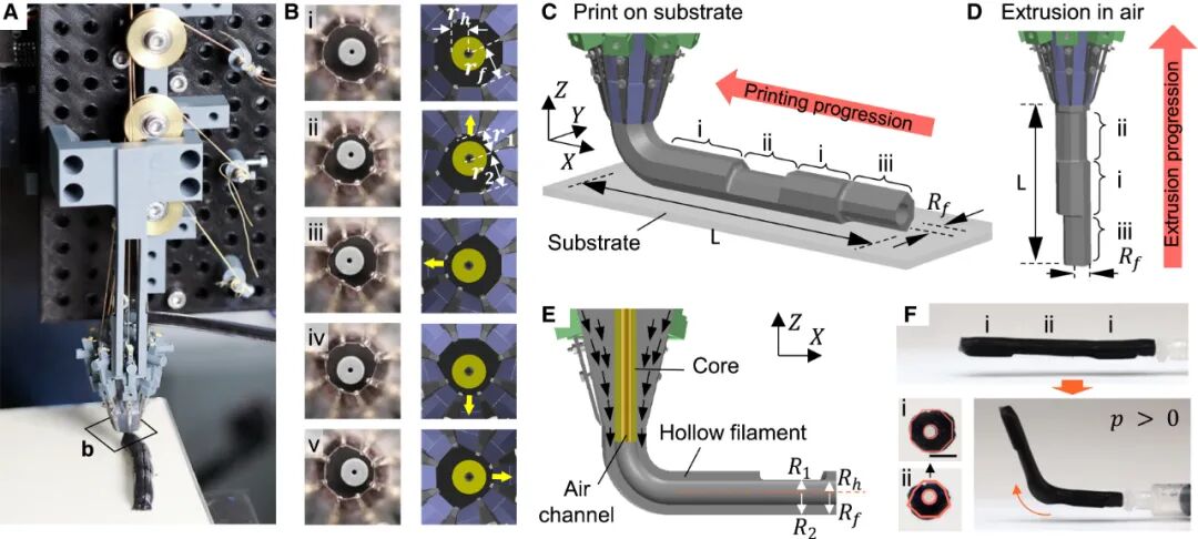 3D打印可变型自适应喷嘴,中空纤维一键造软体机器人