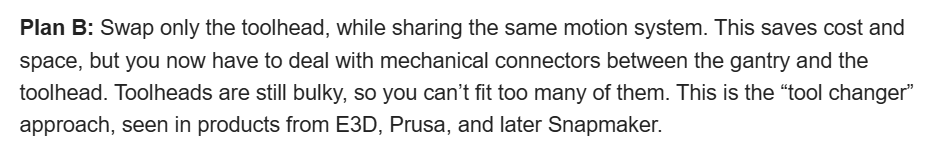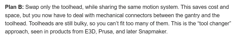 这样你就可以共享运动系统、挤出机和冷却,从而节省更多空间和成本。