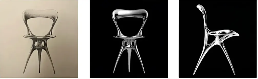 研究人员与设计师Ross Lovegrove、Lovegrove工作室以及Modem合作,利用Gemini内的生成式图像系统产生设计概念,随后这些概念被用于金属3D打印制造。
