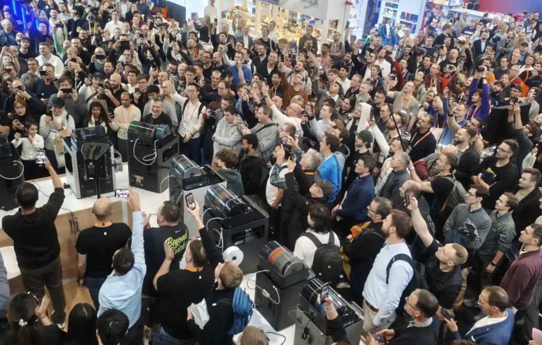 德国法兰克福,拓竹的展台前人山人海,人群等待H2C的正式揭幕。