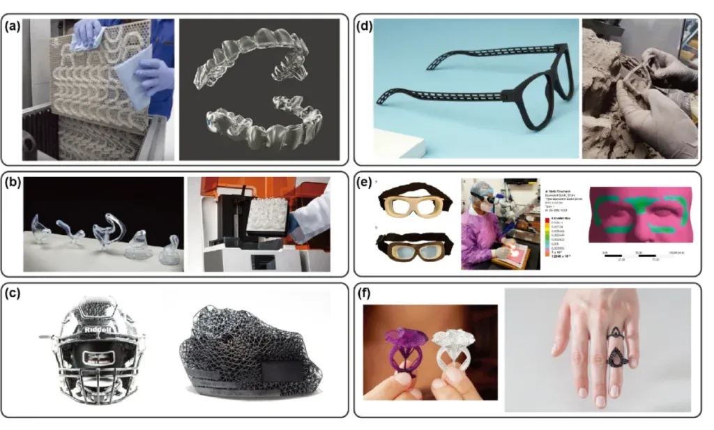 在应用分析部分,研究涵盖了医疗保健、消费品和分布式制造等多个领域。例如,患者专用的牙科矫正器、助听器和骨科植入物,其生产高度依赖能将数字扫描直接转化为可打印几何结构的增材制造技术。报告还提到,在COVID-19大流行期间,包括Formlabs和Carbon在内的公司曾利用SLA和DLP系统生产了数百万个鼻咽拭子。工业应用案例则包括德国铁路和美国通用电气利用增材制造技术进行维护备件和工装的按需生产。