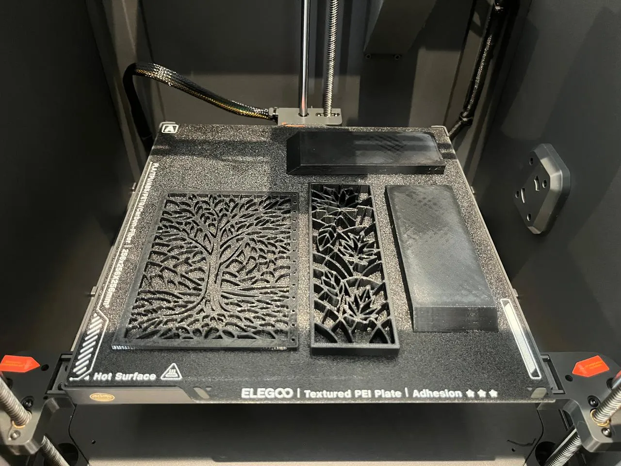 有纹理的PEI板粘附力极佳,机器也配备了光面打印板,但评测中有纹理的那面从未离开过机器。