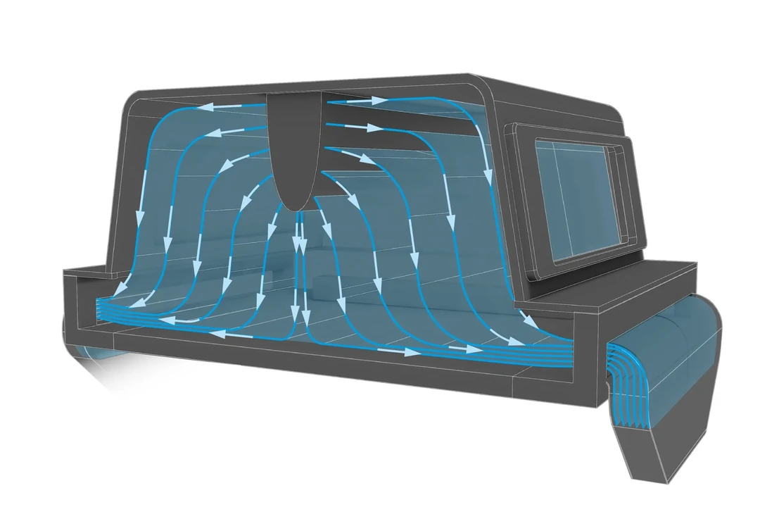 该设备包含两项关键技术创新,旨在解决长期制约大尺寸粉末床熔融的难题。其一是AirSword气流管理系统,它能在整个成型区域保持均匀的多层气流,防止激光烟尘干扰光学系统,并保护光学元件在长时间运行中的稳定性。其二是Dynamic Scan Fields软件功能,它集成在EOSPrint软件中,允许八台激光器协同工作,而非固定于特定象限。