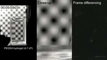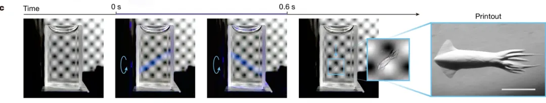 Fig. 1c显示,在低粘度PEGDA水溶液(4.7厘泊,比牛奶还稀)中,0.6秒完成成型。