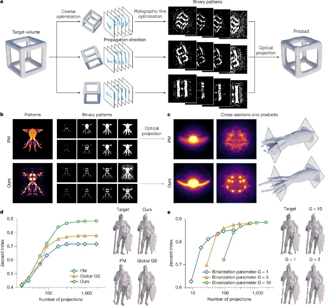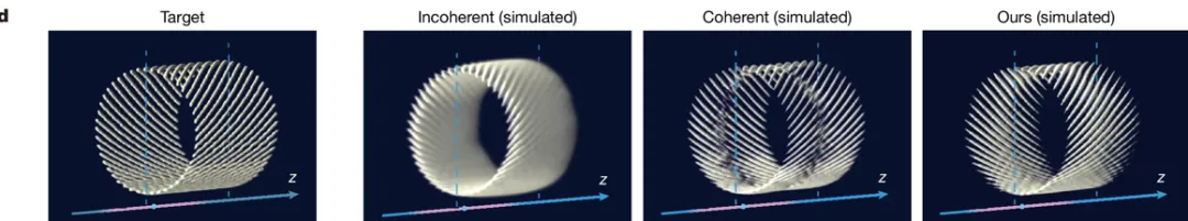 这篇Nature论文的完整度很高。硬件设计、波动光学建模、全息优化算法、自适应标定、多种材料打印验证、流控集成演示。