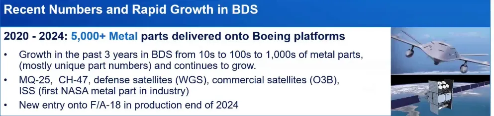 波音对于3D打印从验证到实际使用的过程认证极其熟稔,因为其是3D打印的老牌用户了。