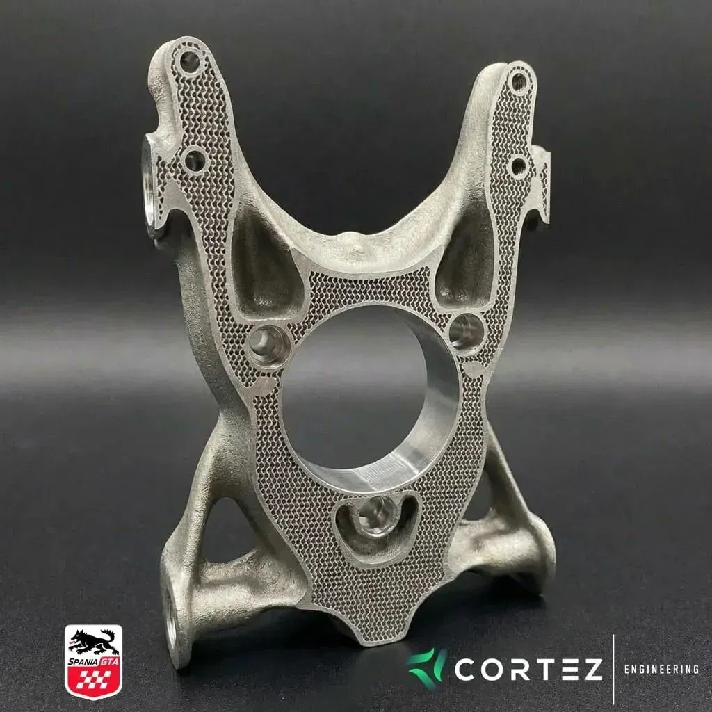 他们找了一家工程团队,用金属增材制造重新做了一个转向节(upright)。