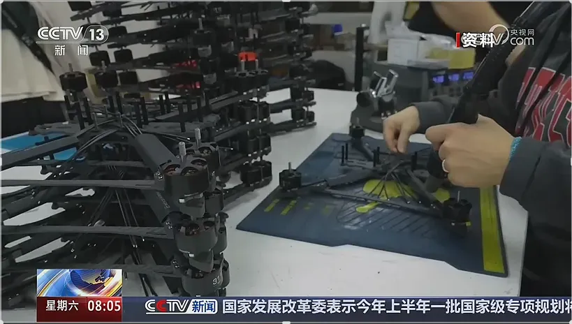 意外的是报道里出镜的画面:FDM3D打印机正在打印无人机零部件,但没有特别解说3D打印。