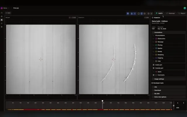 操作员可以在构建过程中,实时流式传输并存储粉床图像。