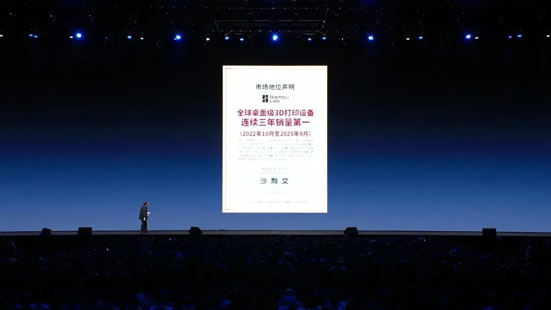 "全球桌面级3D打印设备连续三年销量第一,从2022年10月到25年的9月期间,连续三年销量第一,而且是无可争议的第一。不像有一些机构打得还挺厉害的,有人说按销量他是第一,这边说按金额他是第一,这个没有什么他都是第一。"