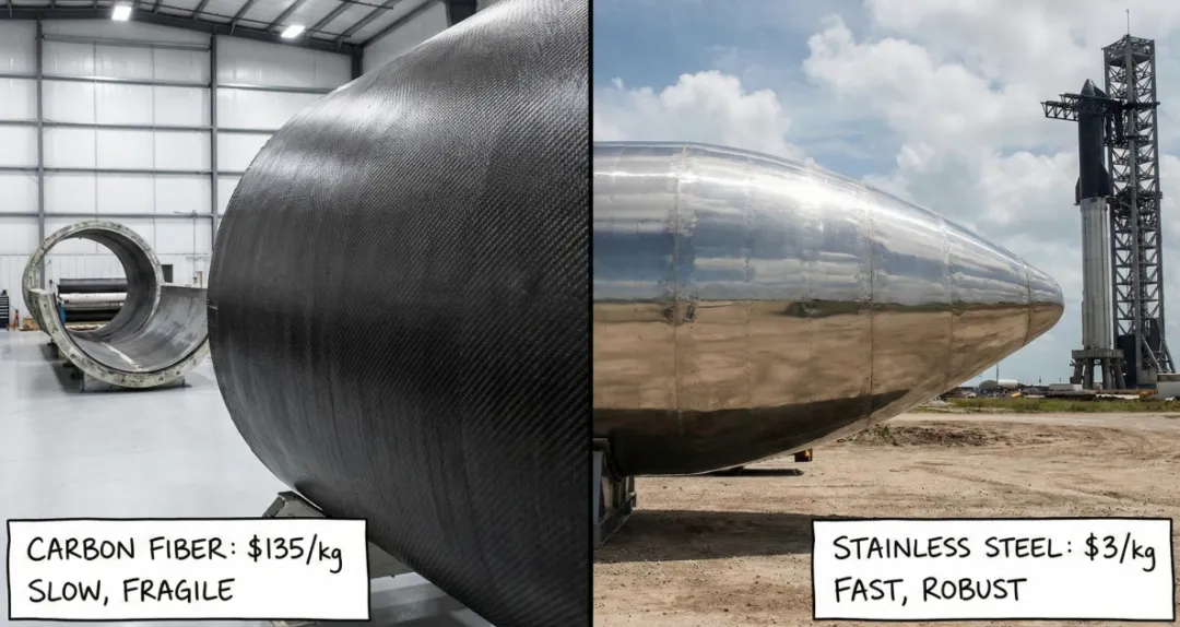 实际上SpaceX后来还在300系不锈钢基础上开发了专有的30X合金。但核心决策逻辑不是追新材料,而是回到一个被航天界忽视了几十年的老方向,用物理第一性原理重新审视它在低温工况下的真实表现,然后果断押上去。