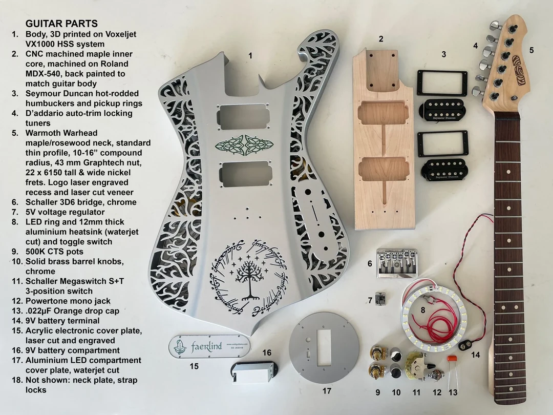 奥克兰大学Olaf Diegel教授运用高速烧结技术成功3D打印《指环王》主题电吉他,尼龙12一体成型实现高精度内部结构与低后处理需求