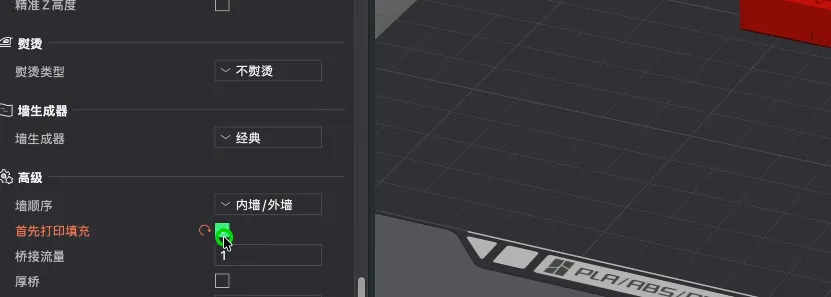 对比试试Owen推荐的【先打填充】的切片参数效果。
