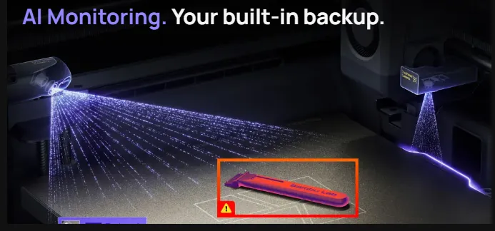 X2D配备了31个传感器及AI监测相机,可扫描打印板上是否有异物,同时可检测打印板的放置位置。