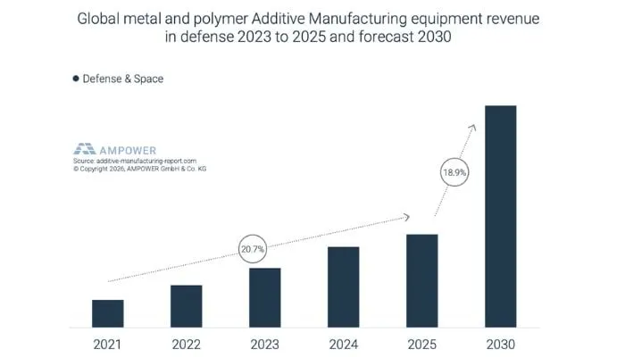 报告进一步明确指出,国防和航空航天领域是过去四年金属增材制造增长的最大驱动力,其年均增长率均超过20%。
