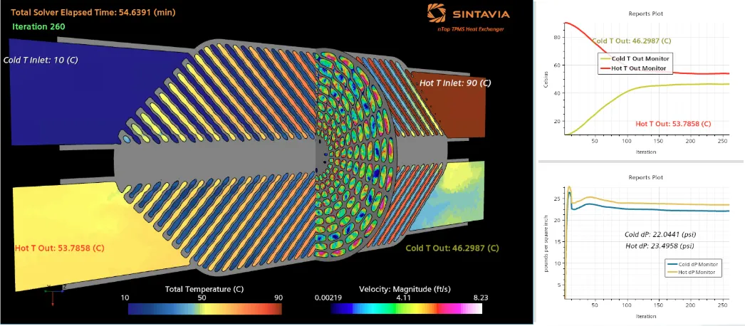 Sintavia用nTop为这个热交换器建模,网格超过3000万单元,用掉了96GB显存中的82.6GB。