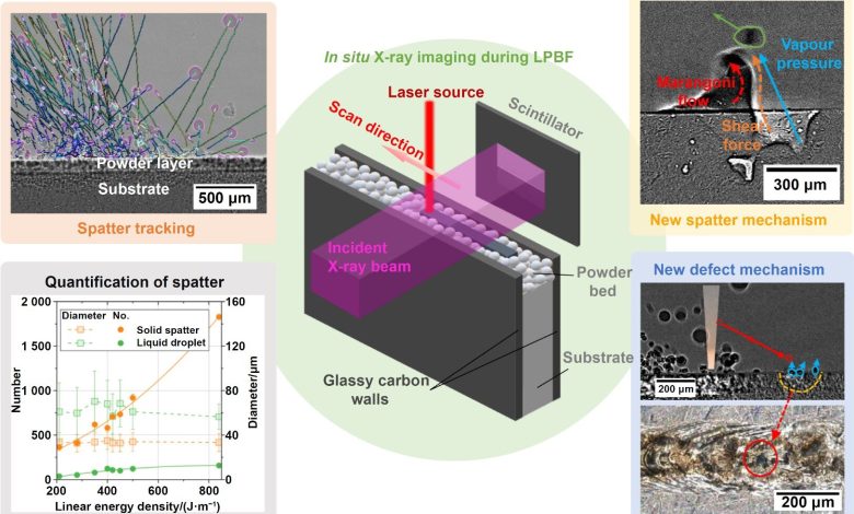 通过在欧洲同步辐射装置(ESRF)应用高速X射线成像技术,团队以每秒40,000帧的速率捕获了打印中飞溅颗粒和熔池的动态行为。