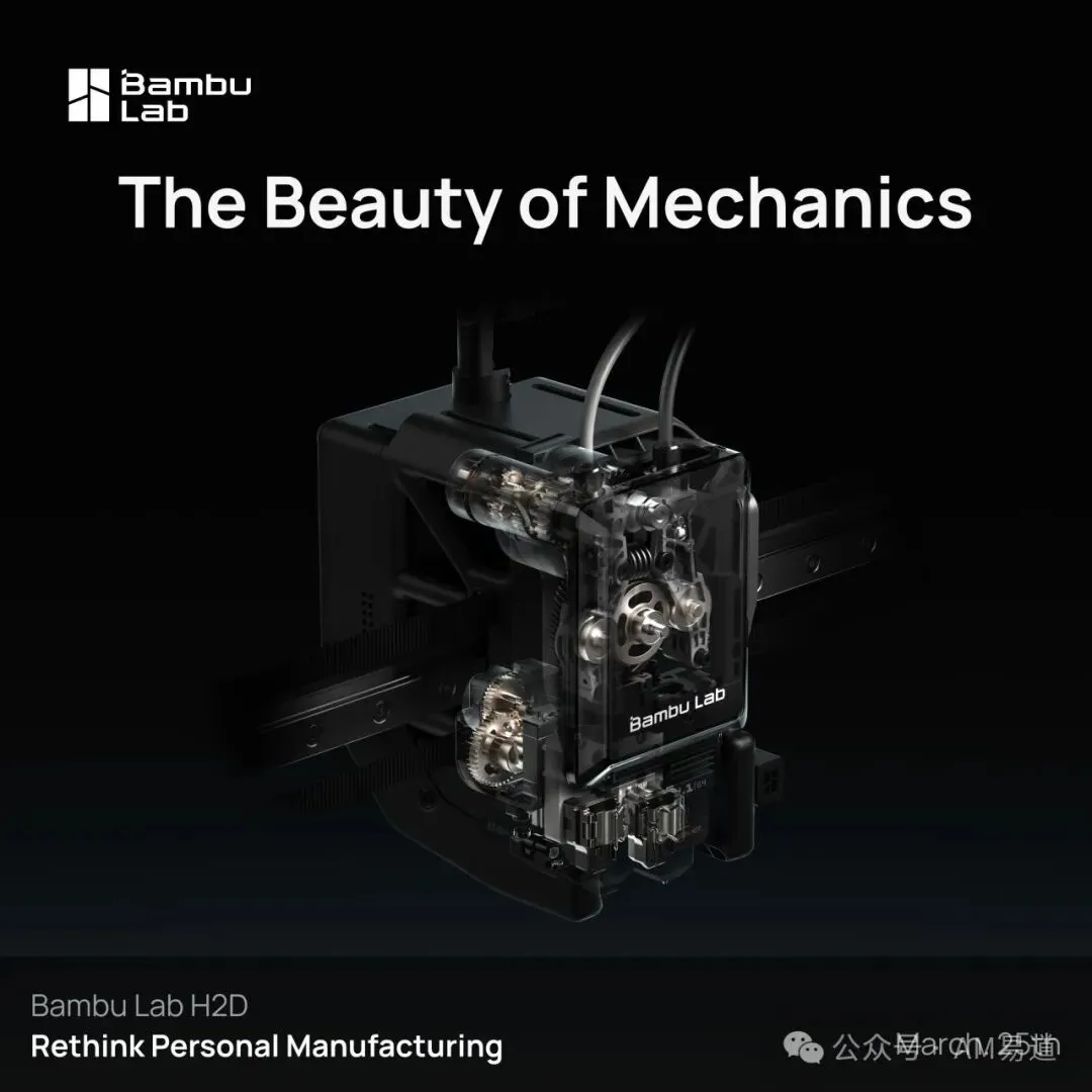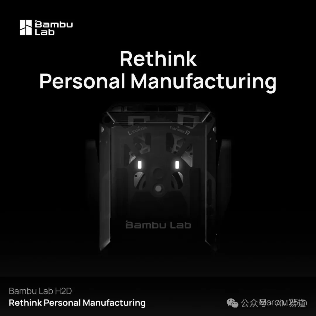 "重新思考个人制造(Rethink Personal Manufacturing)"这句Slogan背后,或许是拓竹对整个3D打印行业的又一次认知冲击。AM易道团队解析官方预热海报后发现,H2D将集结五大技术突破:全新双挤出系统、精密机械控制架构、突破性工业级精度系统、材料干燥处理技术,以及可能的激光集成模块。H2D选择的双喷头系统(L/R Extruder)从海报中一览无遗,但其背后的技术思考或许远比表面看起来更为深刻。