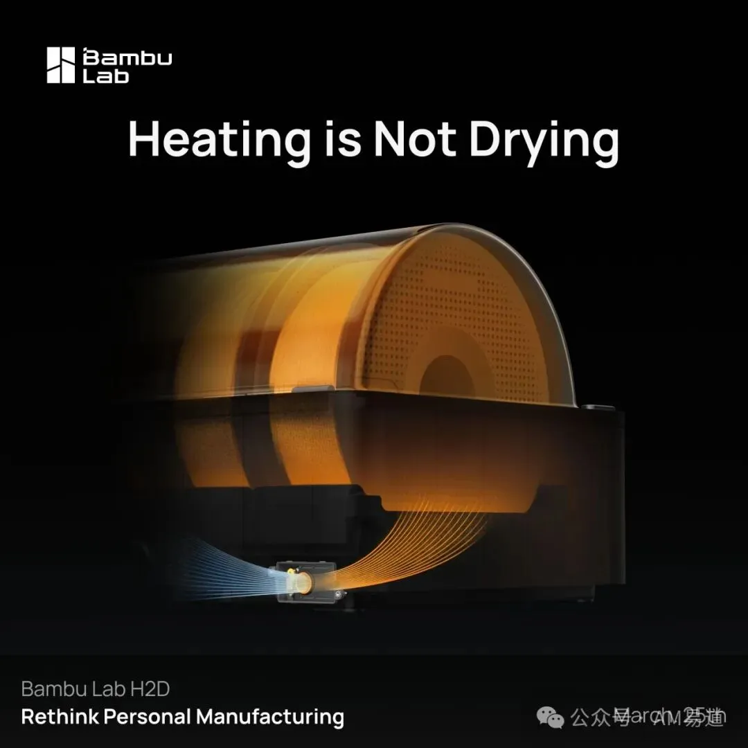 传统简单加热功能早已不能满足高性能工程材料干燥的需求。从图上看,H2D似乎采用了集成热循环、气流控制和可能的湿度监测的综合干燥系统,这将扩展其材料兼容性。AM易道认为,功能性零件的直接制造对材料性能有苛刻要求,而先进干燥系统可能成为其开拓这一高价值市场的关键技术支撑。