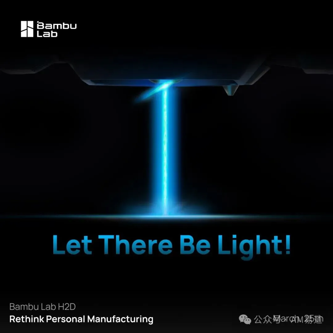 AM易道认为,这一系统很可能是H2D实现工业级精度的核心技术之一。另外一张海报"让光明降临"配合蓝色光束的视觉元素,再次强调了H2D集成高级光学技术。