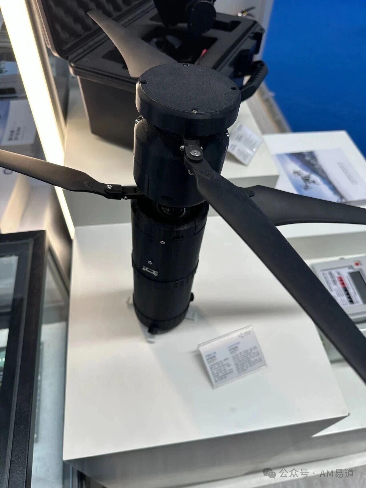 今天分享的照片依然是在展会拍摄的,本来我只是被这种杯子状的无人机所吸引而拍摄,但一上手,发现了其圆柱结构表面的层纹痕迹,竟是3D打印的。