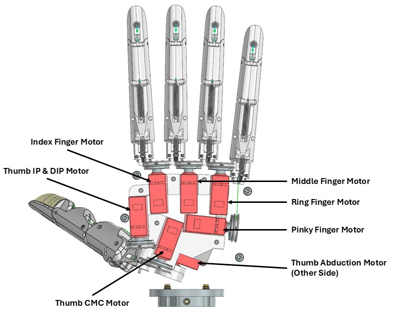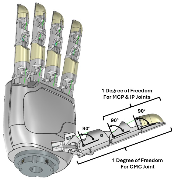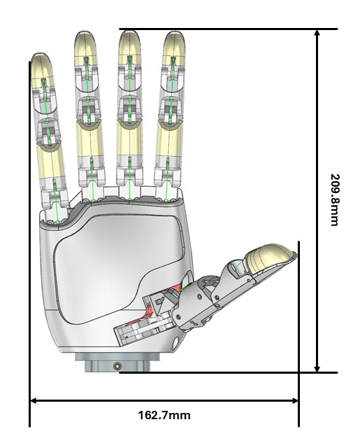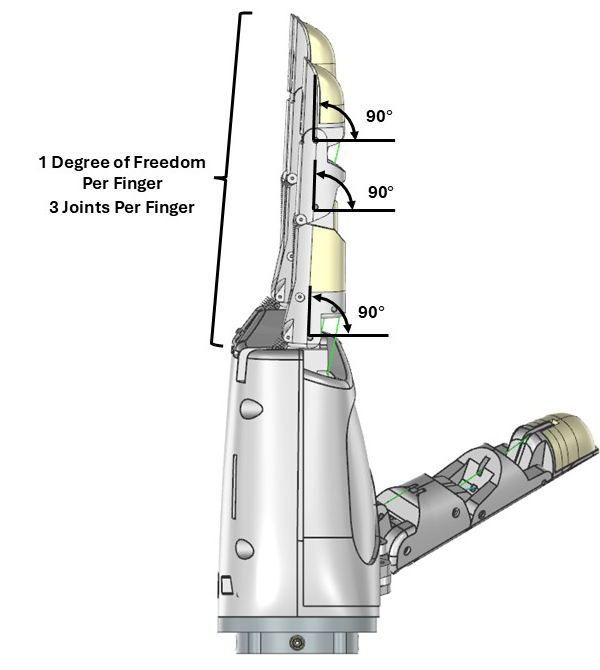 每根手指都是独立模块,包含三个指节和相应的关节结构。