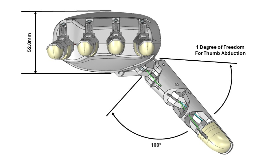 AM易道认为,腱驱动最大的优势在于把所有驱动器集中在手掌部位,手指本身只需要打印骨架和关节结构。