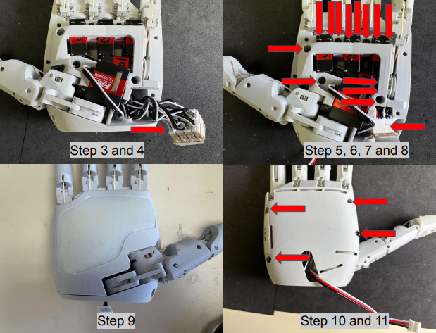 先安装大拇指,因为它的运动范围最大,需要更多调试空间。