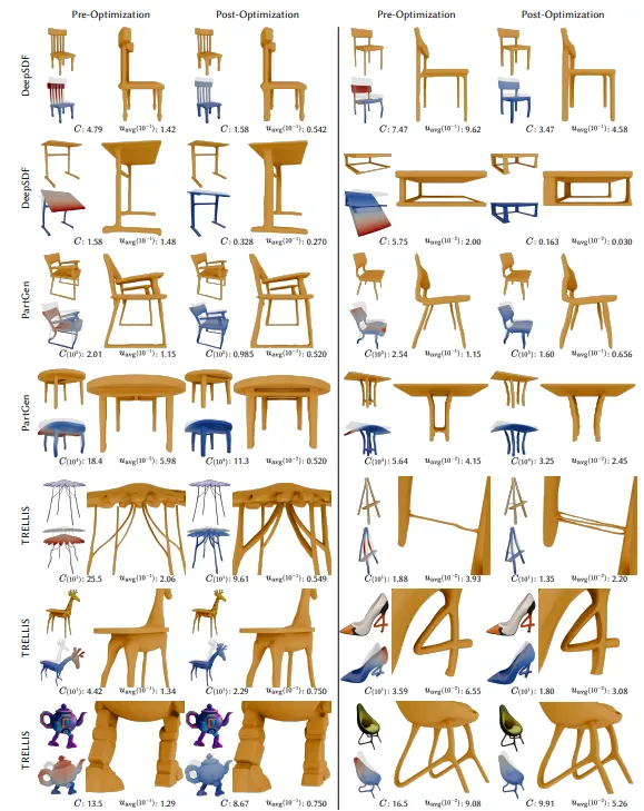 很多AI建模软件是不带物理合理检查的,即使有,在这文章之前,物理合理性是3D生成流程的事后检查项。