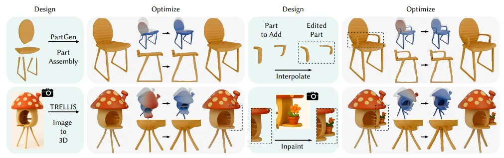 PhysiOpt不绑定某一个AI模型,理论上可以接任何能输出隐式场的3D生成器。