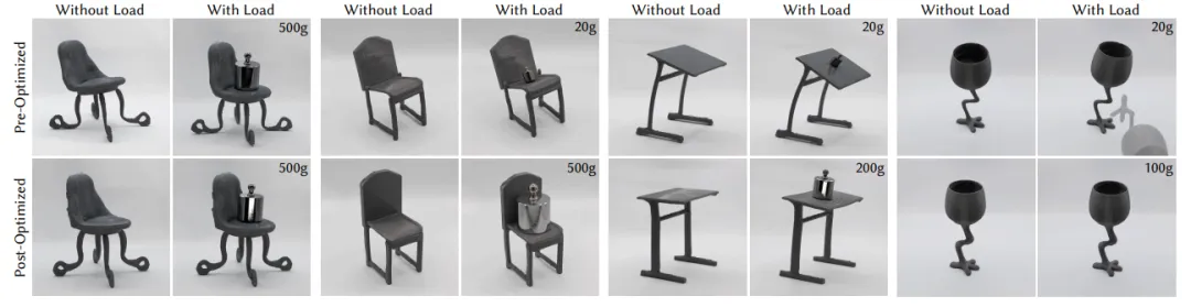 对生成出来的形状跑一次有限元分析,就是工程师用来测桥梁和飞机零件的那套东西,把物体切成小块,逐块算力学响应,看哪里撑不住。