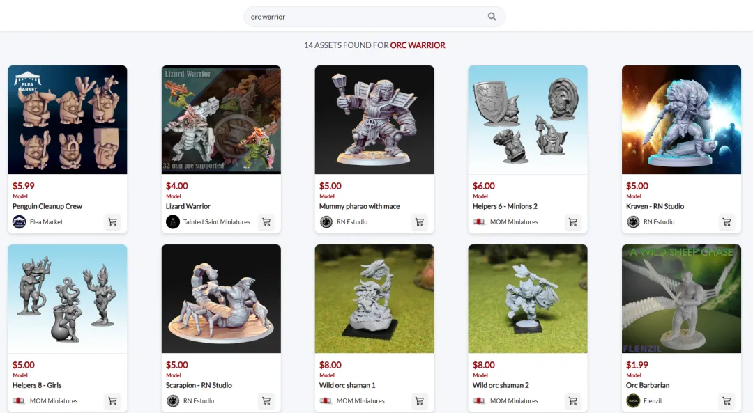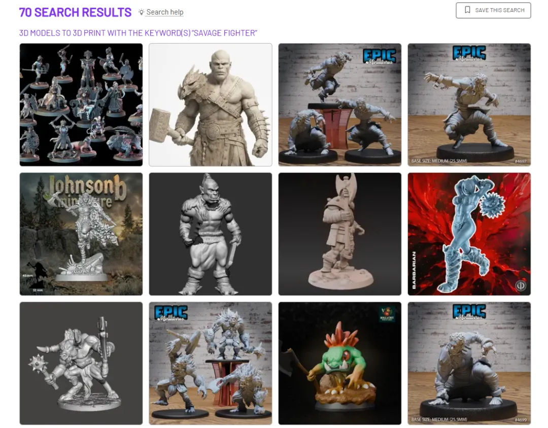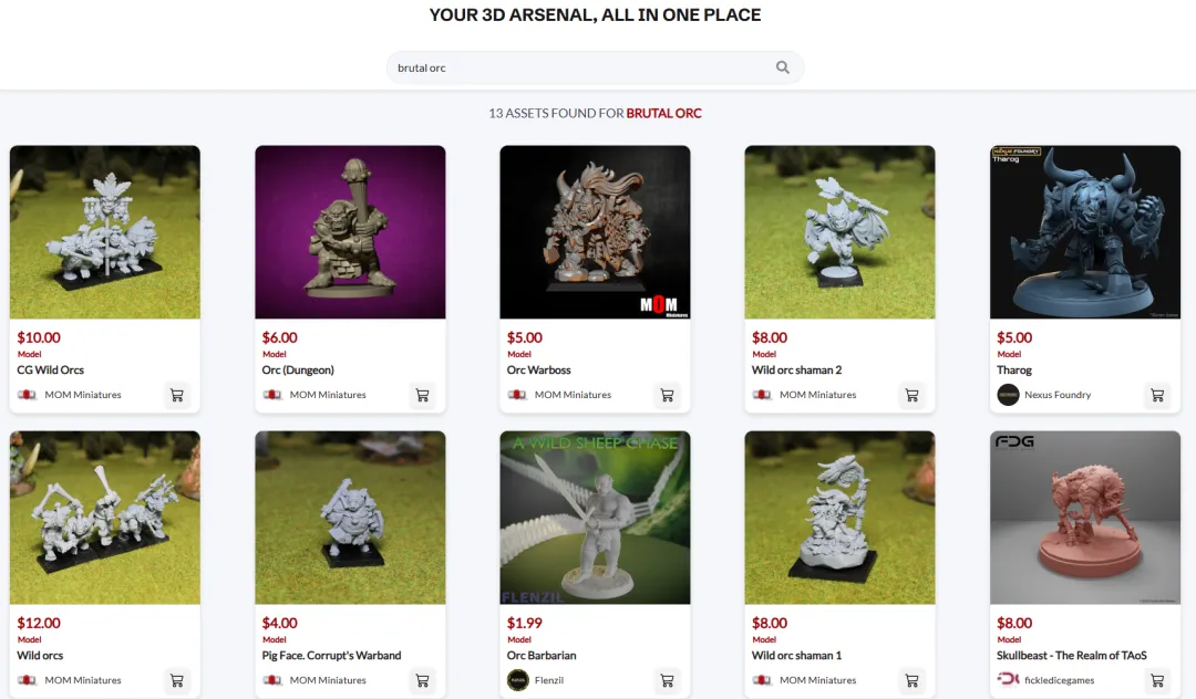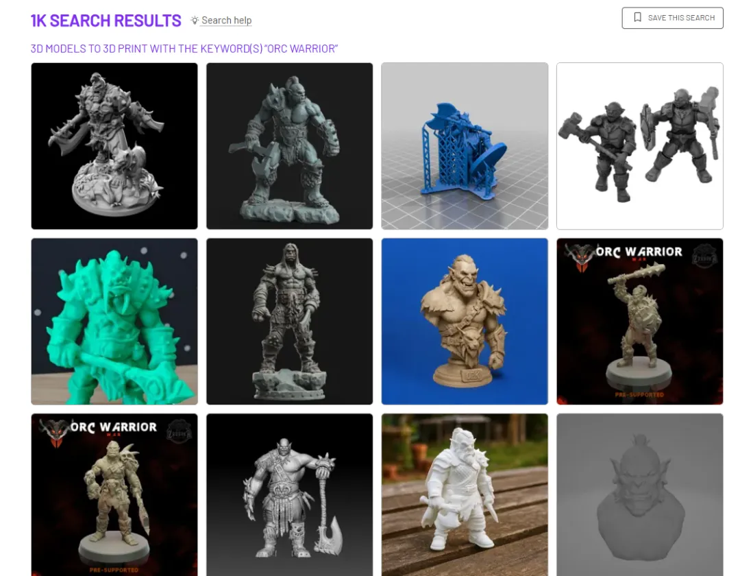 假设你想打印一个游戏人物手办,以兽人为例,我们在Cults模型站上搜"brutal orc"(凶猛兽人),找到137个结果。