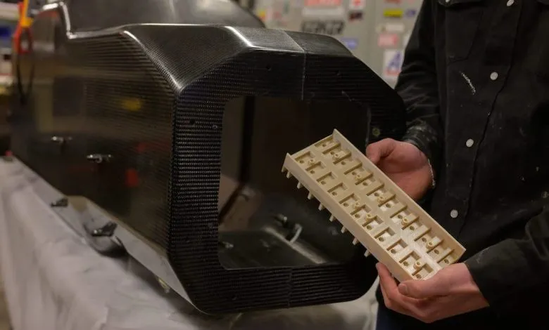 一个关键应用是在开发和制造电池单体与PCB支架上。这个用于赛车高压电池堆的部件负责固定软包电池单体并支撑监测控制的PCB,需要采用兼具阻燃性、优异热稳定性和电绝缘性的材料制造。
