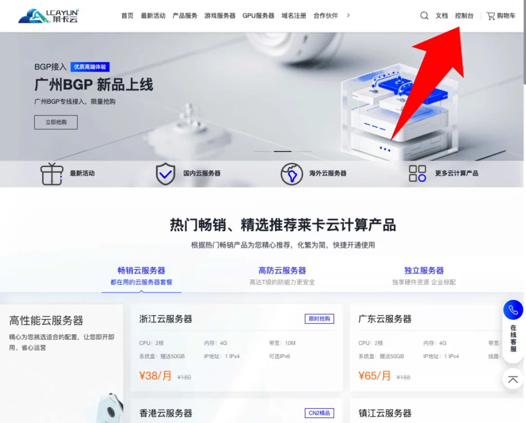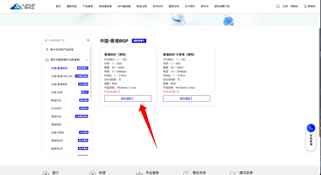 注册好网站后,然后我们点击产品列表,开始选购服务器。